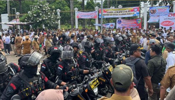 Beritainternusa.com,Jakarta – Aksi unjuk rasa massa dari Asosiasi Pemerintah Desa Seluruh Indonesia (Apdesi) masih berlangsung di Depan Gedung DPR RI hingga sore ini. Aksi unjuk rasa ini kian memanas.