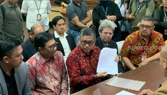 Hasto tiba di MK didampingi oleh Ketua DPP PDIP Djarot Saiful Hidayat. Hasto kemudian memasuki ruangan MK sambil membawa sebuah berkas. Setelahnya Hasto menyerahkan berkas tersebut kepada pihak MK.