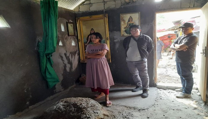 Dalam rumah Nurheni itu tampak bangunan kecil mirip makam dengan gundukan tanah di atasnya. Terdapat taburan bunga di atas ‘makam’ tersebut.