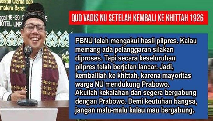 Padahal, tanpa mendengarkan PBNU, PKB terbukti gagal dalam proses pemilihan presiden beberapa waktu lalu.