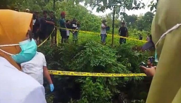 Ada selimut agak putih, sepatu wanita dan sekilas bentuk tubuh tapi tidak lama ditutup kembali. Warga melaporkannya ke Pemerintah Desa diteruskan ke polisi,” ungkapnya.