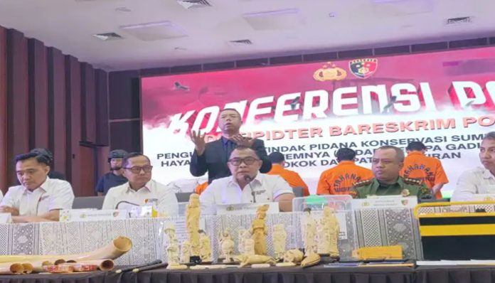 Konferensi pers terkait pengungkapan perdagangan ilegal gading gajah