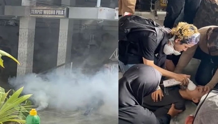 Sebuah video yang kini viral di media sosial merekam momen mengerikan saat gas air mata ditembakkan aparat hingga ke tempat wudu, membuat para demonstran yang mencari perlindungan tumbang tak berdaya.